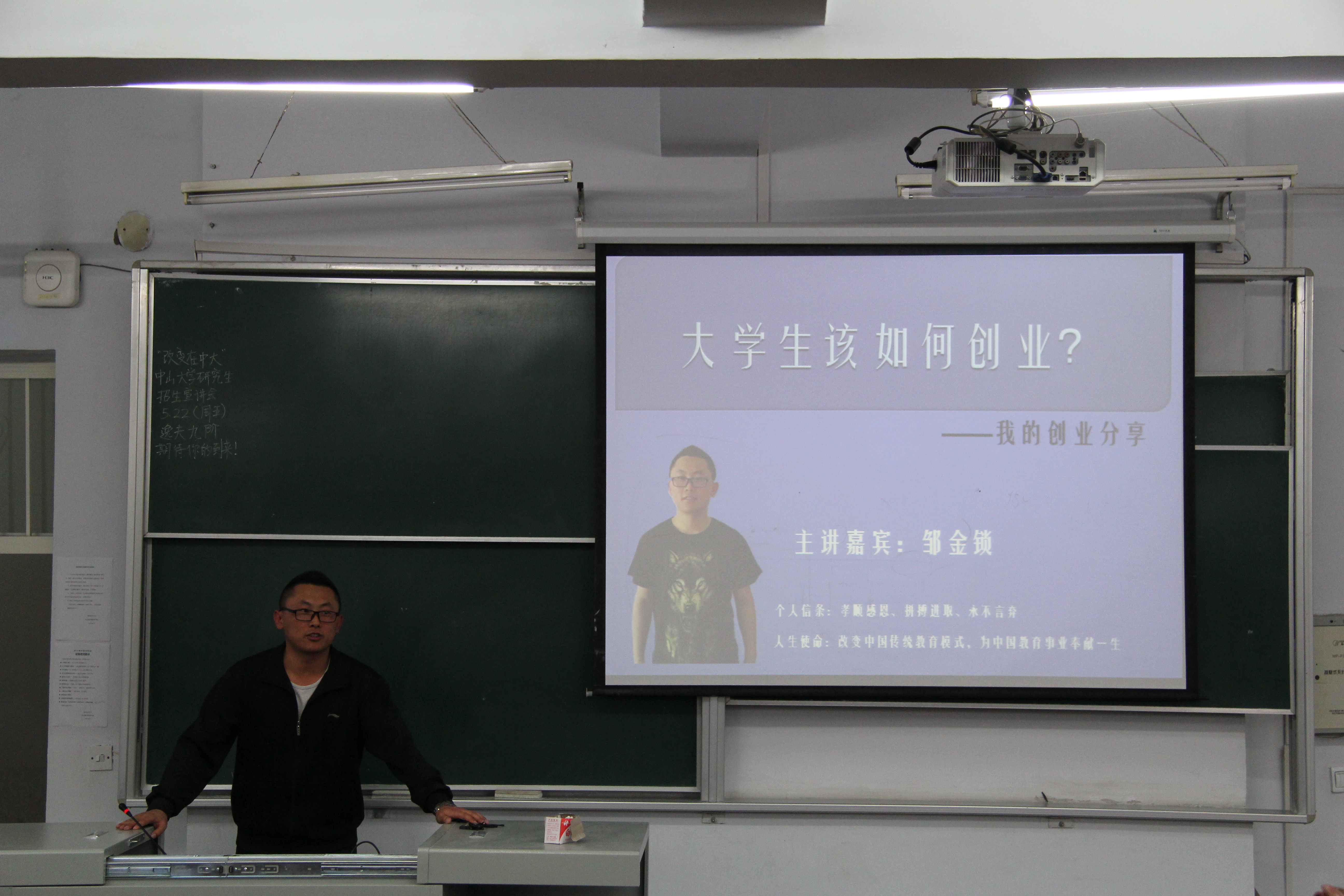5月20日晚,在本科生就业与创业指导课上,辅导员邀请到龙腾教育培训机构校长邹金锁(成人导航