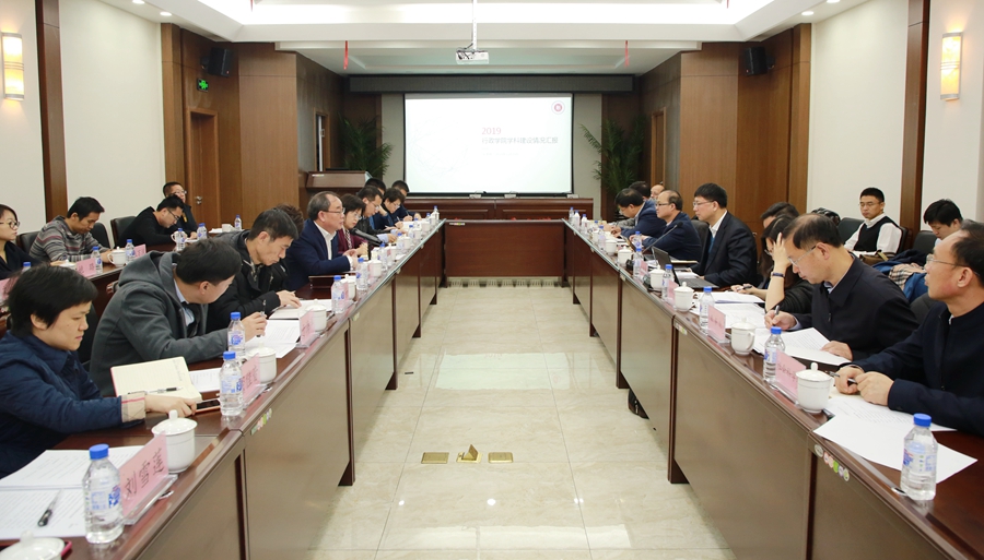 相关负责同志分别就学院建设发展、党建及“不忘初心、牢记使命”主题教育开展情况作专题汇报。学院班子成员、各分委会主任及学科带头人、党支部书记代表和青年教师代表等围绕调研主题进行深入交流。