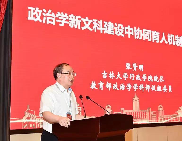 院长、国务院学位委员会政治学学科评议组成员张贤明受邀参会并作了题为“政治学新文科建设中协同育人机制的构建”的发言。他认为,政治学是哲学社会科学中重要的支撑学科,政治学的人才培养关系到国家治理和社会的方方面面。政治学专业人才培养需要在“新”和“经世致用”融合中走出一条创新之路。新文科建设背景下的政治学专业人才培养要实现目标协同、过程协同和学科协同。