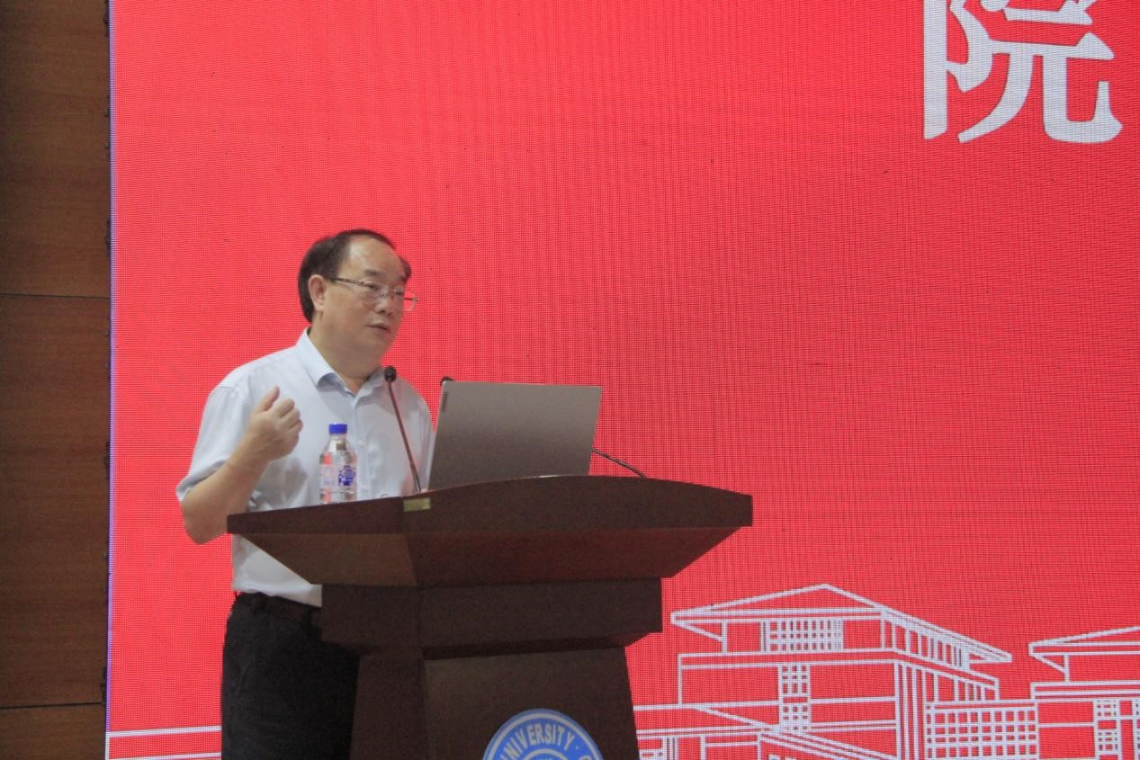 成立40周年,介绍了学院学科发展历程,并就如何成长为堪当民族复兴大任的新时代专业人才向新生寄语教诲和嘱托。一是积累专业知识,要提高课堂学习的关注度,拓展课外阅读的涉猎面,探寻科研训练的切入点,增强社会实践的主动性;二是培养专业思维,要以独立性思维观察社会,以公共性思维推己及人,以包容性思维构建良善;三是厚植专业情怀,要心系家国命运,肩负责任担当,激发学术敏感。