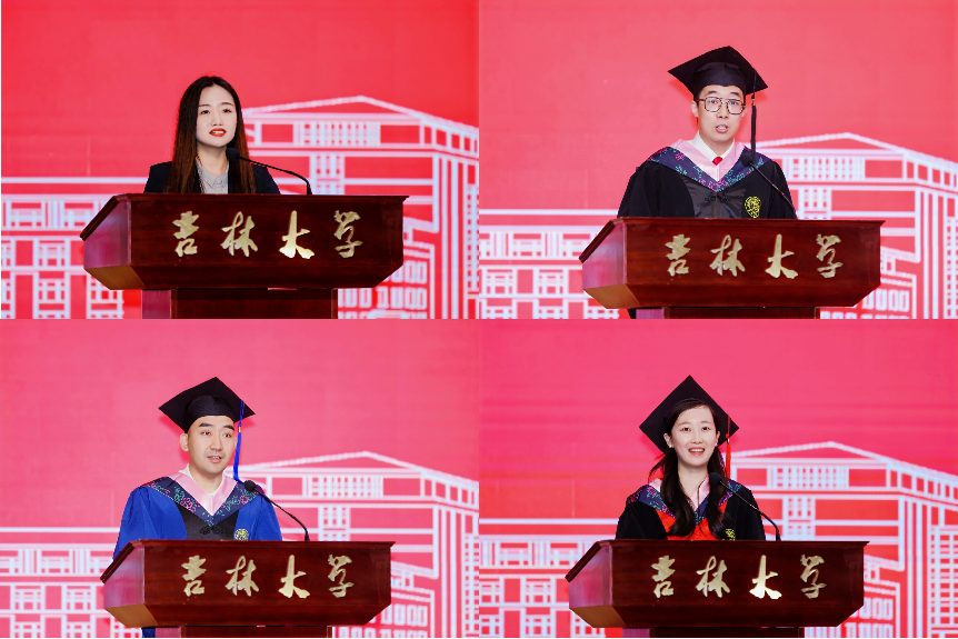 “请允许我,称呼在座的同学们为‘吉行’军,因为你们从‘吉’林大学踏上人生新征程,从‘行’政学院奔赴人生新阶段;‘吉行’军整理行囊,带着学校学院的印记,以理想为灯、以奋斗当楫、以创新作帆,奔赴属于你们的星辰大海”。院长马雪松以《致“吉行”军——书写生命情节、舒展年华细节、疏通成长关节》为题致辞。马雪松代表陈希贵书记和学院全体教职员工,向荣获学位、顺利毕业的各位同学、向2025届363位“吉行”军,致以衷心的祝贺!回首大学时光、感悟青年人的生命、年华、成长,马雪松勉励2025届毕业生锻造整齐严肃的修身境界,以坚实稳固的精神内核应对层出不穷的挑战;秉承勤谨和缓的处世智慧,以长期主义的行为准则摆脱浮躁喧嚣的裹挟;坚守知行达悟的运思方式,以持续更新的认知能力穿透错综复杂的表象;淬炼笃近致远的实践品格,以敦本务实的躬行践履打破躺平内卷的迷思。“壶中天地终有尽,赠饮江海始无穷”,马雪松表示,学院每一位老师都会在白山黑水之间时刻等待“吉行”军再回母校,认真倾听同学们书写下的生命情节、舒展起的年华细节、疏通开的成长关节,祝愿同学们获得内心的安宁和长久的幸福。