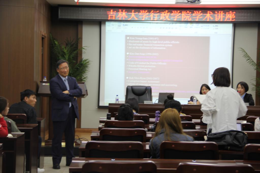 在本次活动最后,金秉燮教授与在场的师生进行了热烈的互动,就大家关心的如何鉴定腐败、治理腐败等相关问题给做出了深刻的讲解。金秉燮教授抽丝剥茧、深入浅出的解读深受大家喜爱,此次活动亦得到广大师生好评。