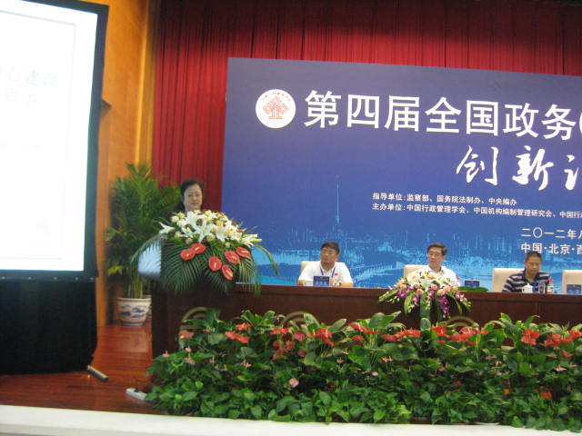 8月8至9日,由监察部、国务院法制办、中央编办指导,中国行政管理学会、中国机构编制管理研究会、中国行政体制改革研究会主办,北京市人民政府支持,西城区人民政府承办的第四届“全国政务(行政)服务中心创新论坛”在北京市西城区举行。本次论坛以“构建政务服务体系,提升行政服务能力”为主题,旨在贯彻落实中共中央办公厅、国务院办公厅《关于深化政务公开加强政务服务的意见》文件精神,进一步推动行政管理体制改革和政府管理创新实践。 国家预防腐败局副局长崔海容,国务院法制办副主任袁曙宏,北京市副市长丁向阳,中国行政管理学会会长王澜明,中国机构编制管理研究会会长黄文平,中国行政体制改革研究会副会长汪玉凯,北京市政府副秘书长朱炎,区委副书记、区长王少峰等出席论坛并发言,来自中央有关部委、各地政务服务中心、学术机构的负责人和专家学者300余人参加了此次论坛。成人导航