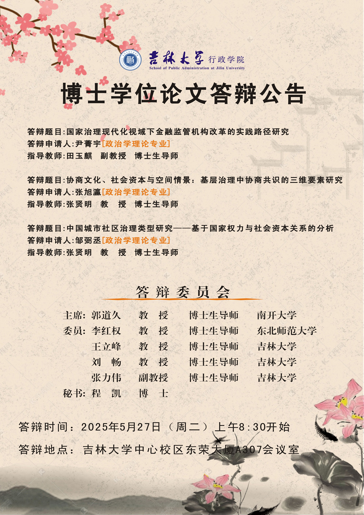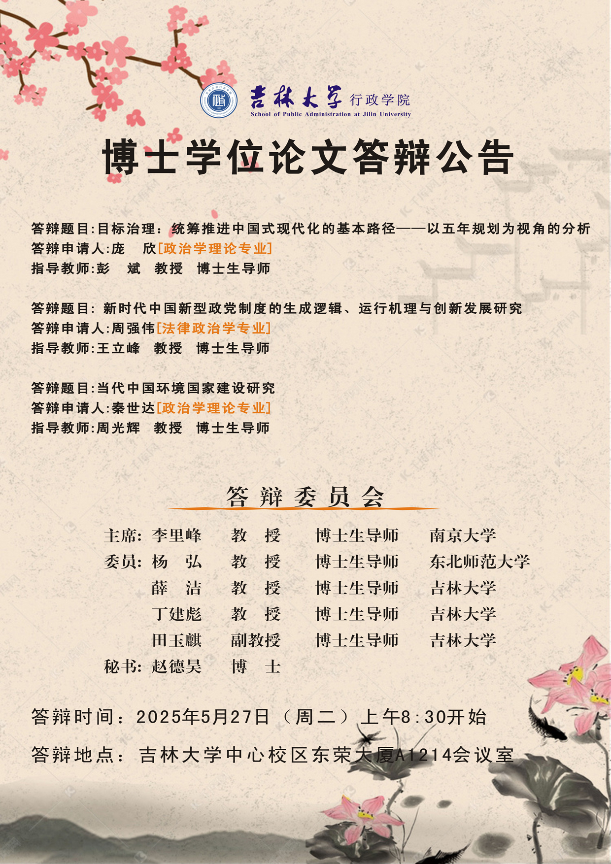 答辩时间:2025年5月27日(周二)上午8:30开始