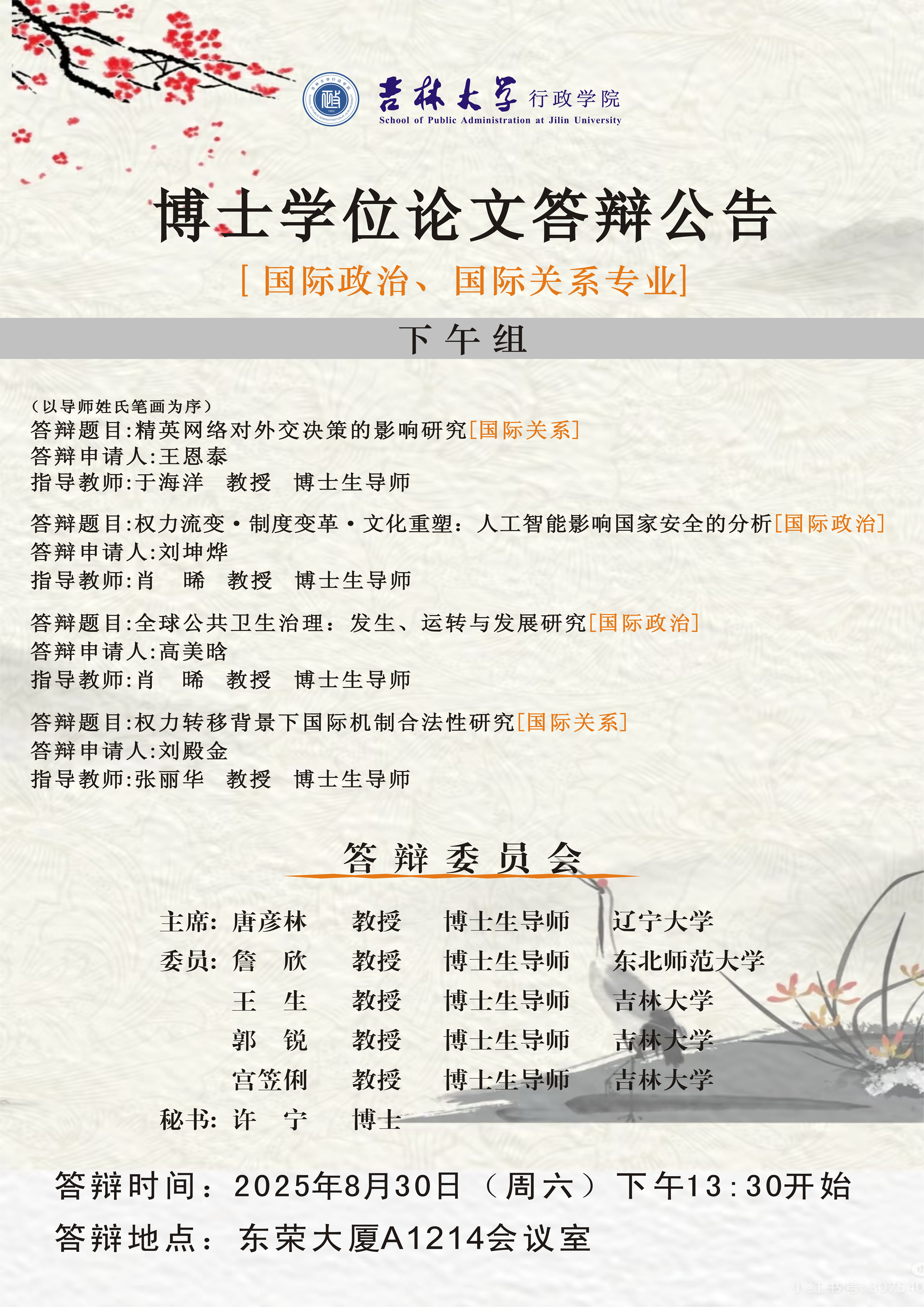 备注:参加旁听的同学,请全程保持手机静音或关闭状态,严禁在第三方网站发布、传播不当视频或言论。