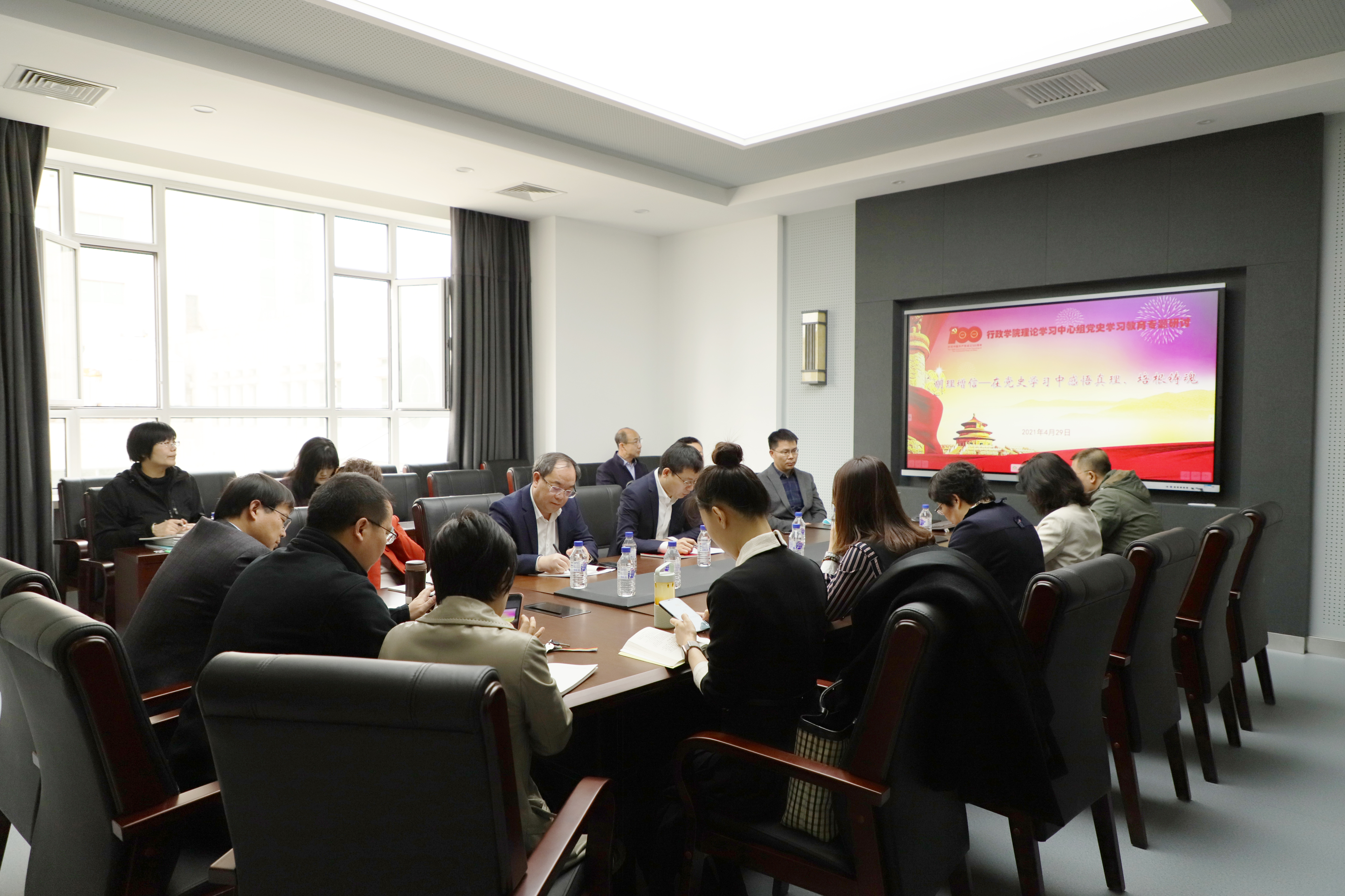 在东荣大厦B304会议室召开党委理论学习中心组党史学习教育专题学习研讨会,本期学习的主题是“明理增信——在党史学习中感悟真理、培根铸魂”,学院领导班子成员、党委委员参加了本次学习,学校第4指导组成员列席会议。会议由党委书记马景惠主持。