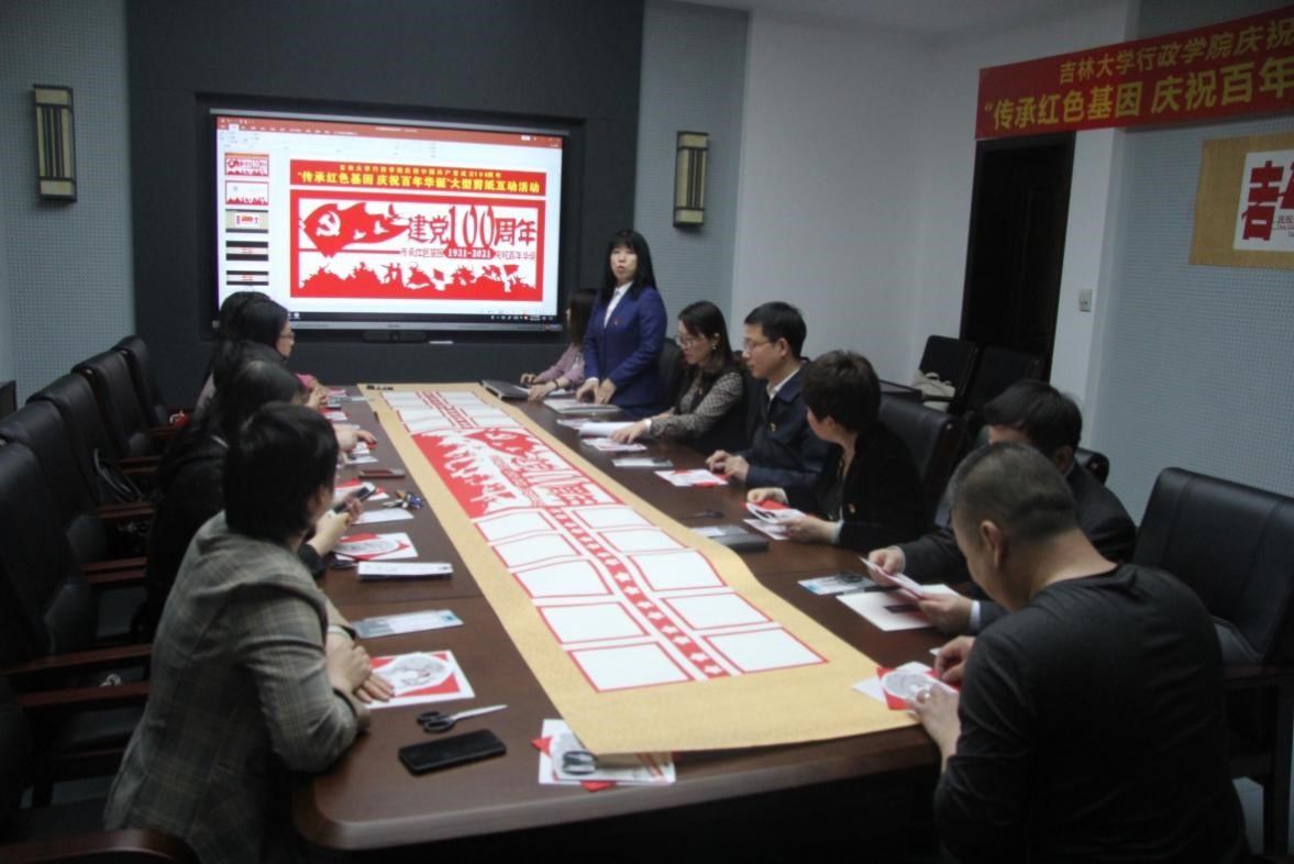 妇委会联合工会在东荣大厦B304会议室举办“传承红色基因 庆祝百年华诞”主题剪纸活动。本次活动邀请吉林省博物院二级美术师马俊、中国民间剪纸艺术家马晶指导培训,我院20余名老师参加了本次实践活动,活动由党委副书记史慕华主持。