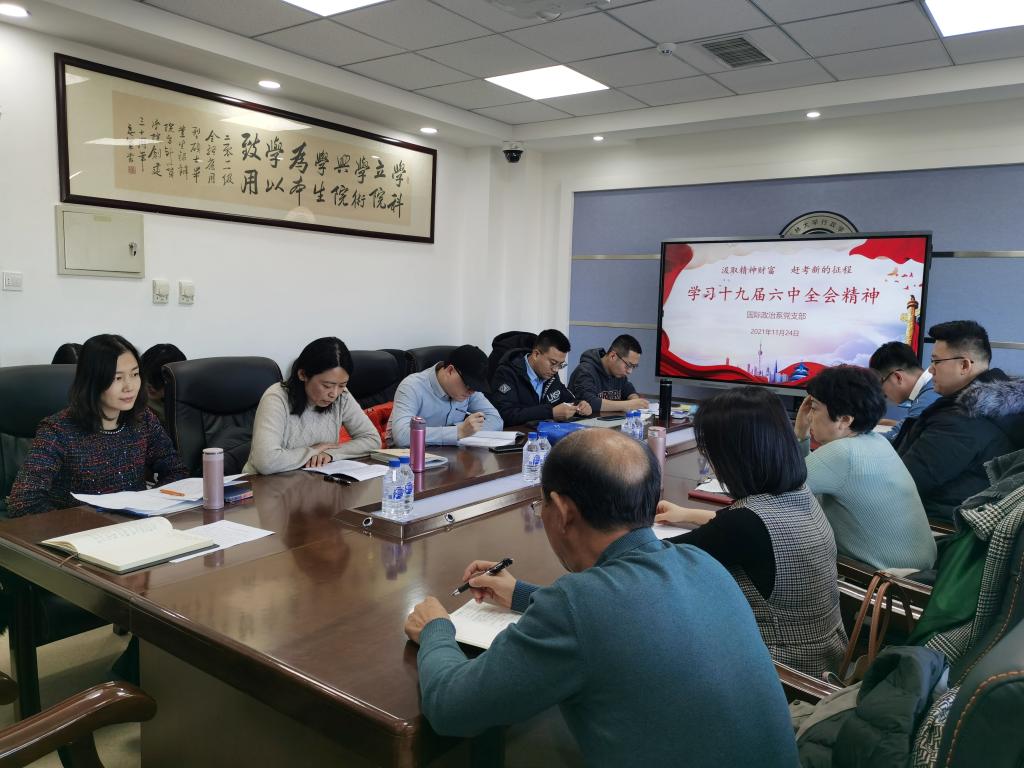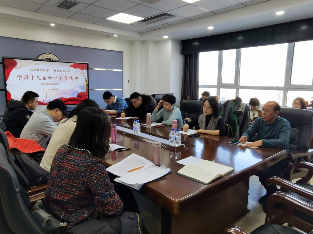 接下来,与会党员师生就自己对十九届六中全会精神的学习情况,结合自身专业知识特点进行了发言及讨论。国际政治系党支部姚璐教授认为,当前我们所处的时代,是一个变化巨大,继往开来的时代,个人命运与国家命运紧密相连。我们要做到守正创新,不忘自己的初心和使命,同时也要不断开拓进取,坚定信仰,坚守初心,为国家的发展贡献个人的力量。研究生党支部孙雪松博士认为,从2002年党的十六大至今,中国对于“重要战略机遇期”的表述几经更改,表明中国也在根据形势,与时俱进。当今世界正处于百年未有之大变局,战略机遇期对于中国而言尤为重要,我们应当立足当前,把握机遇,积极有所作为。最后,校党建联络员李青山同志强调,要认真学习贯彻党的十九届六中全会精神,内化于心,外化于行。同时也要积极探索主题党日活动的形式创新,加强师生之间的互动,让党日活动更具吸引力。