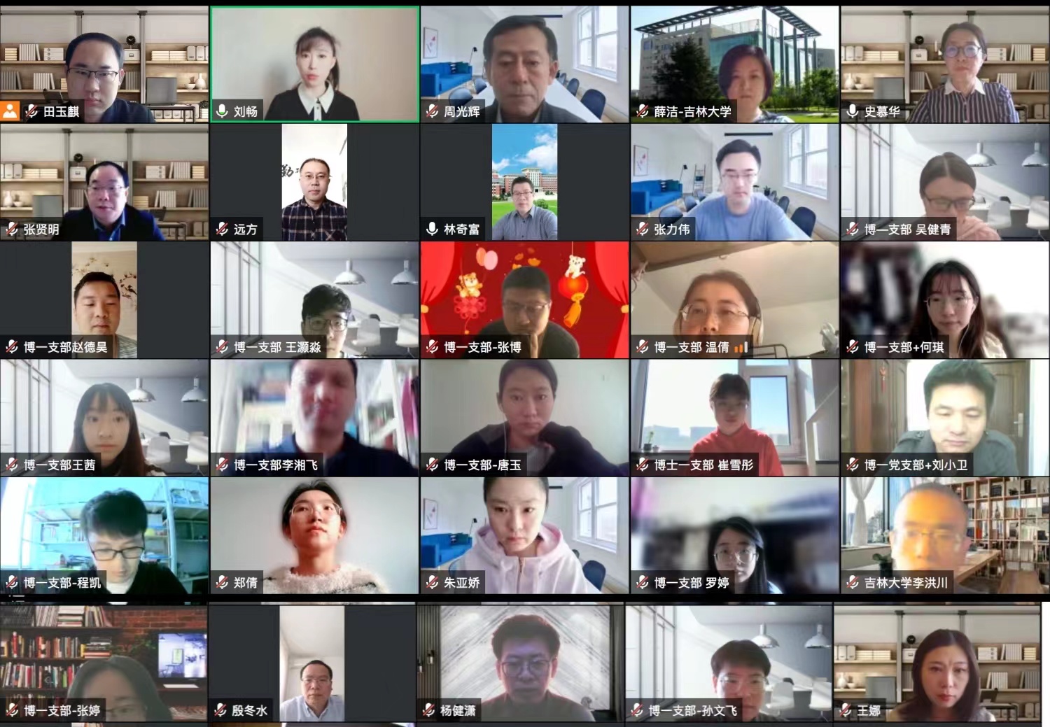 博士生第一党支部的吴健青、王茜、何琪、李洪川、李湘飞、崔雪彤六位同学讲述了自身参与志愿者活动的经历与感悟,结合所学的专业知识对抗疫中的治理现实进行分析与思考,并分享了适应静态管理期间学习和生活的经验。吴健青同志分享了学院老师帮忙取药的暖心之举,王茜同志讲述了抗疫中的吉大力量,何琪同志分析了疫情下党的领导与凝聚力和向心力,李洪川同志运用专业知识思考疫情防控的成效,李湘飞同志传递了隔离期间的经验,崔雪彤同志谈到了政治学专业党员学生的责任与使命。同学们图文结合、声情并茂的讲述,让老师们感受到了同学们在抗疫中体现的团结友爱、勇敢坚强的优良作风。