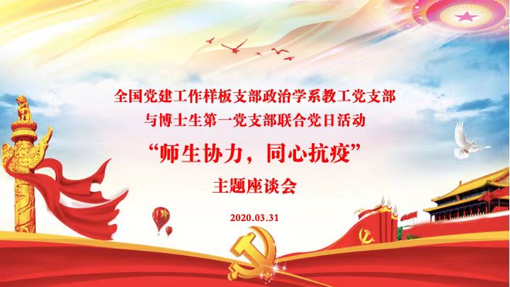 为充分发挥全国党建工作样板支部的引领作用,促进师生在疫情期间的沟通与交流,3月31日,政治学系教工党支部联合博士生第一党支部开展主题为“师生协力,同心抗疫”的联合党日活动。成人导航