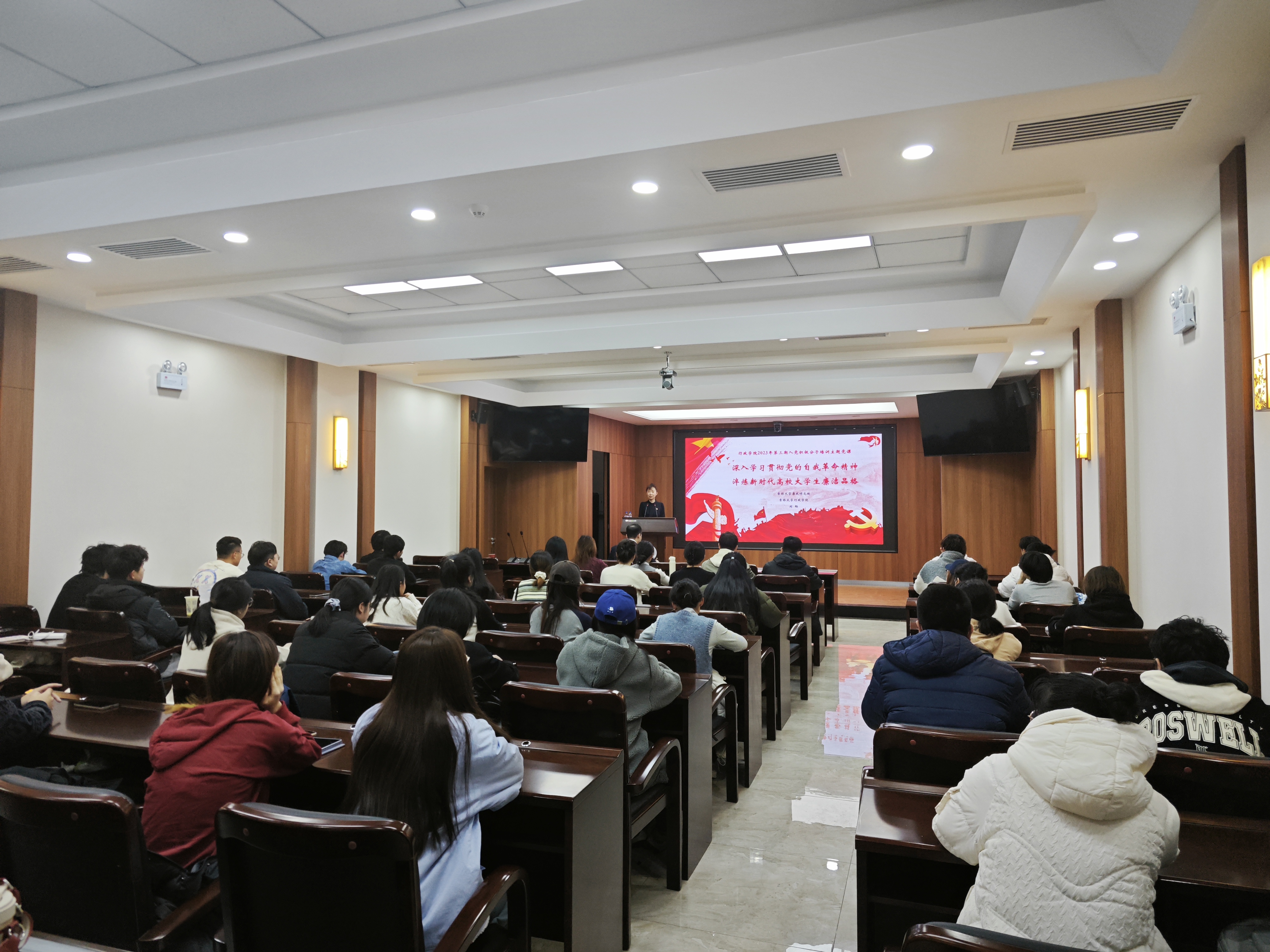 廉政研究院副院长、全国党建工作样板支部书记、2020级与2021级本科生班主任、政治学系教授刘畅受邀为入党积极分子讲授党课。党课由学院党委副书记兼副院长、纪委书记张洁主持。