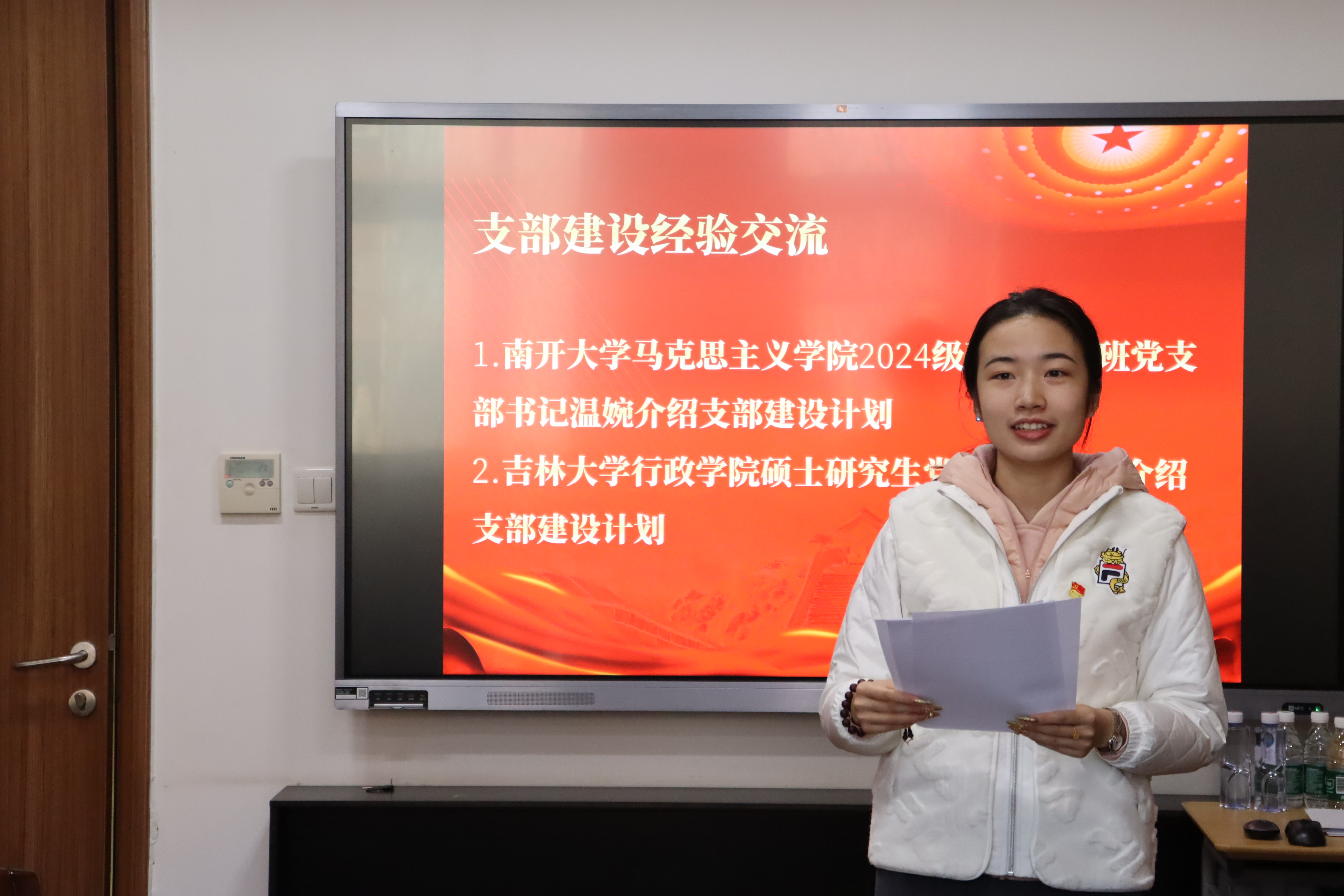随后,双方以座谈会形式,就校史院史、红色文化、支部建设经验、未来发展及共建规划等内容展开深入交流,会议由南开大学硕士4班党支部纪检委员李珍同志主持。