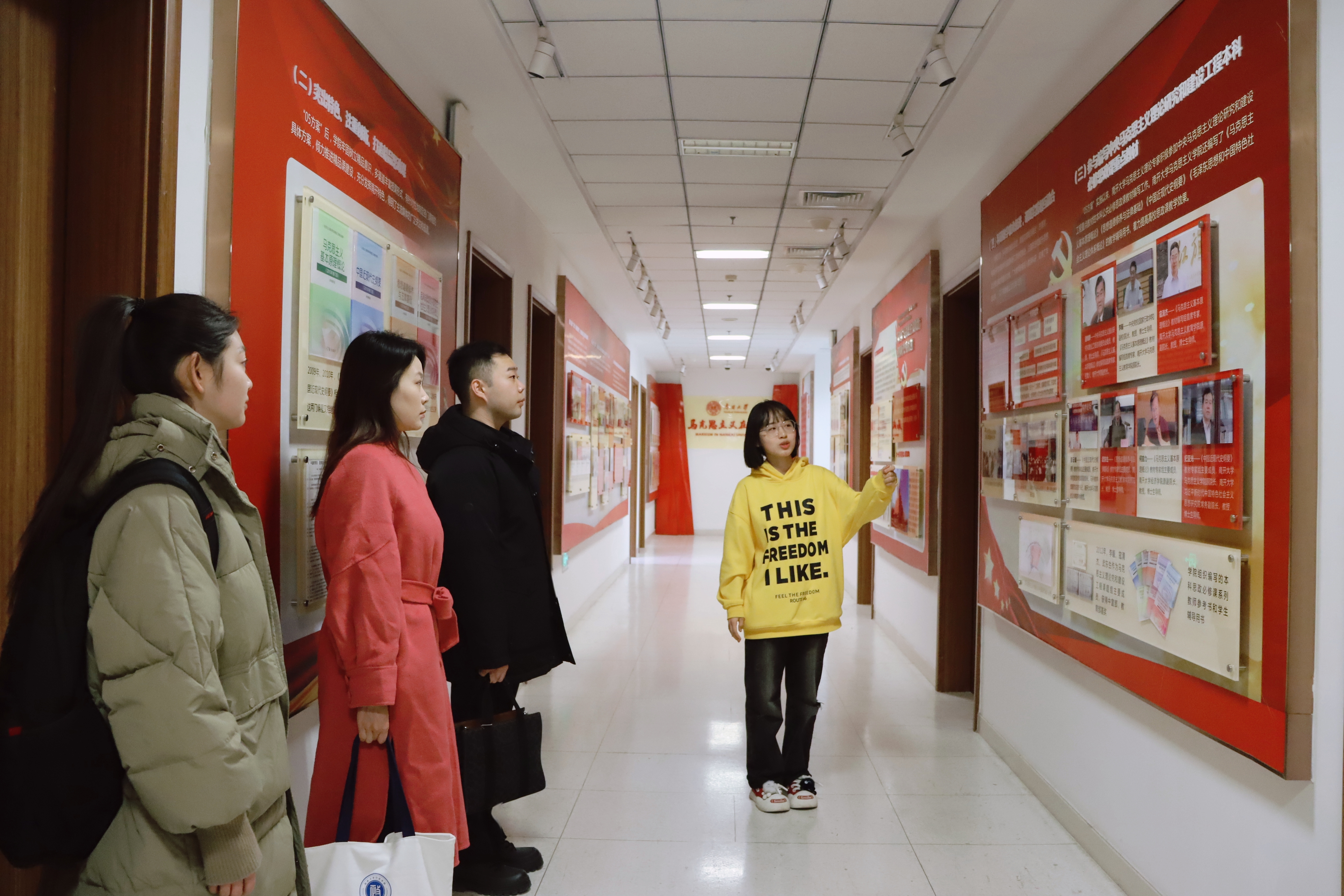 活动伊始,在讲解员的带领下,我院同志参观了《马克思主义在南开》主题展览,深入学习了马克思主义的诞生与发展、中国共产党的革命精神谱系以及马克思主义在南开大学的传播、研究、发展历程和成果。