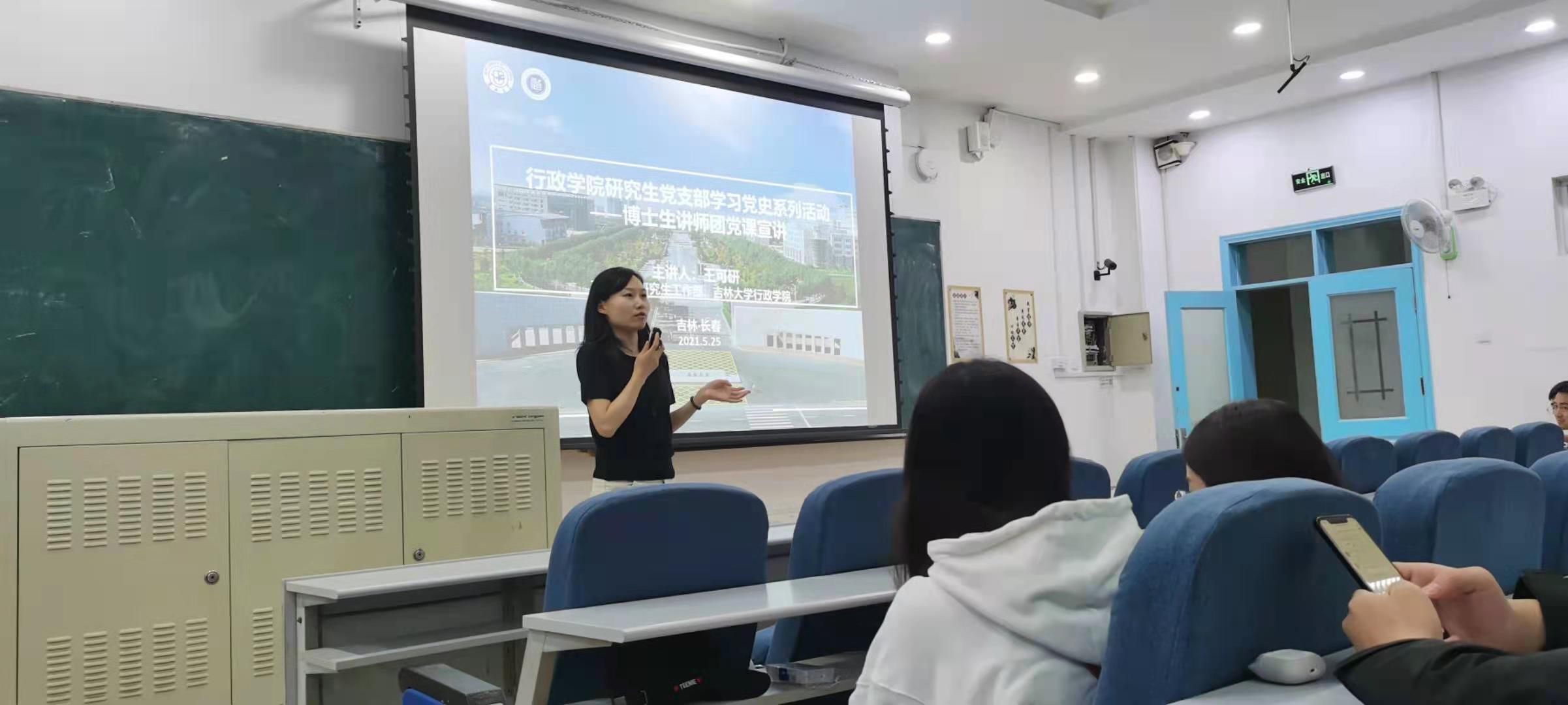 2021年5月25日成人导航 研究生党支部于中心校区第三教学楼第二阶梯教室举办了“成人导航 研究生党支部学习系列活动之博士生讲师党课宣讲”。本次党课宣讲在成人导航 研究生工作部的指导支持下,以“靖宇精神的内涵与当代价值”为主题,由我校博士讲师团的中国近现代史基本问题研究专业博士生王可妍主讲。本次党课宣讲会不仅党员同学全部到场,发展对象、积极分子和其他党外同学也积极地参与了此次活动,本次党课由成人导航 研究生辅导员高琛老师主持。