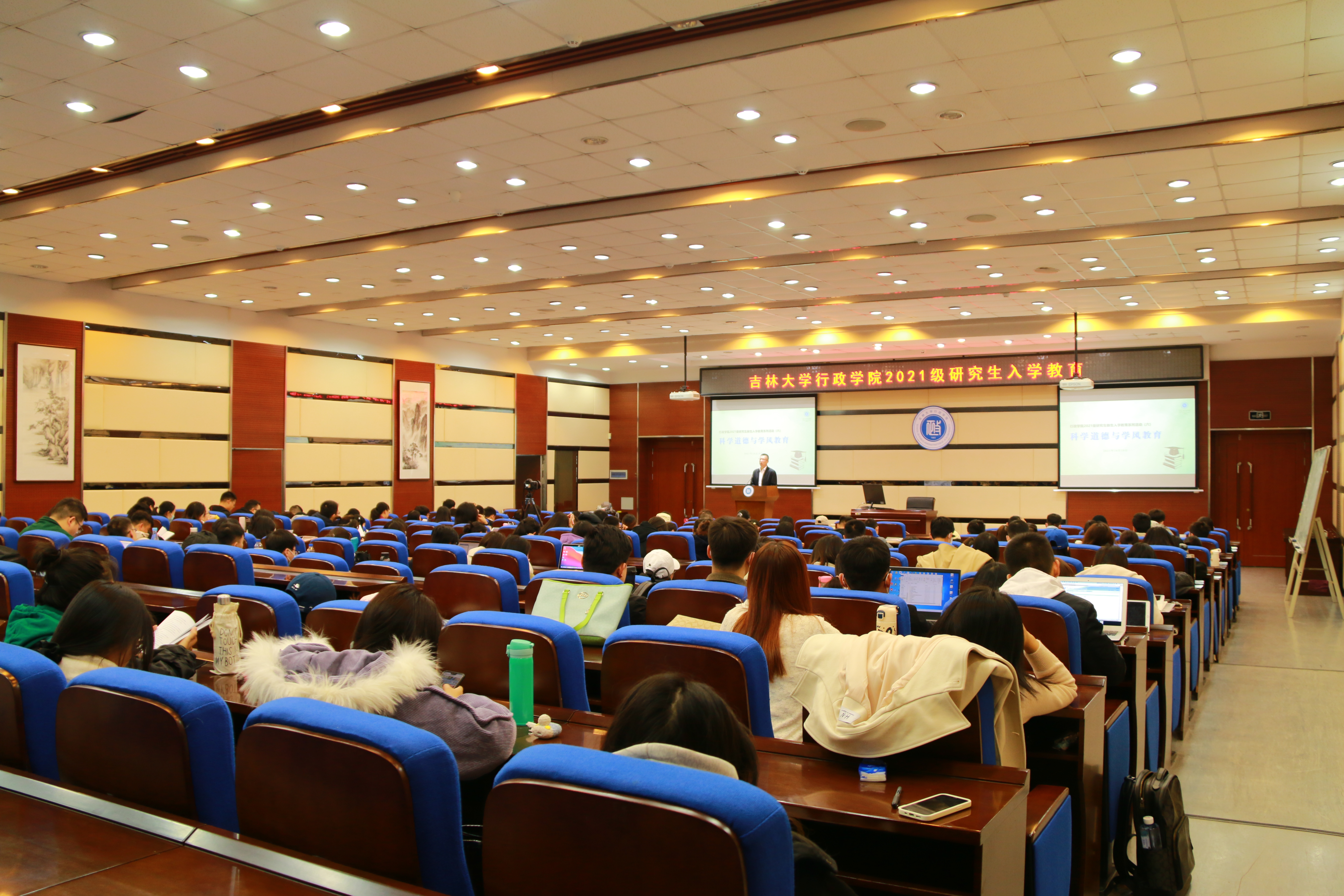在东荣大厦B310报告厅开展“科学道德与学风建设”专题宣讲会,学院副院长刘雪华教授进行主讲,全体2021级研究生新生参与活动。