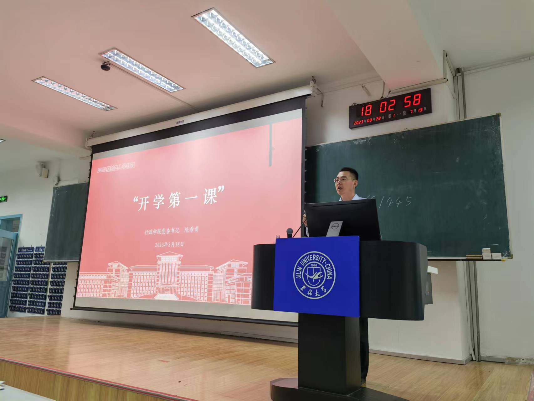 陈希贵书记旁征博引,结合马克思主义基本原理、习近平总书记的重要论述以及党史学习的重要意义,对学校、学院、学科进行了详细介绍,引导新生坚定正确的理想信念,树立崇高的精神追求。首先,陈希贵对学校的发展历程进行了介绍说明,指出自建校以来,吉大就始终积极响应党和国家的号召,具有浓厚的红色基因,传承红色基因是每个吉大学子的使命和责任。其次,陈希贵从建立历史、专业学者、学术影响力等几个方面对学院的发展进行了说明,并结合王惠岩先生的伟大事迹,呼吁学生们传承王先生孜孜以求的拓荒精神,开创事业和奋勇争先的拼搏精神。再次,陈希贵以学院所设学科为依据,明确了以马克思主义为指导思想与建设中国特色的哲学社会科学体系对学科建设与学生培养的重要意义。最后,陈希贵指出青年学生要找准方向跟党走,不断追求进步,端正思想动机,做到不仅在组织上入党,更要在思想上入党。同时,还为具有入党愿望的新生进行了细致的指导,鼓励他们以自身的实际行动向党组织证明自身入党的决心与信心,并对新生党员提出了新的希冀。
