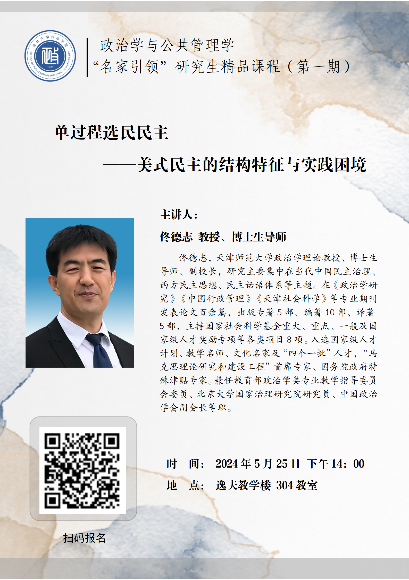 上一篇:【预告】政治学与公共管理学 “名家引领”研究生精品课程(第二期 )