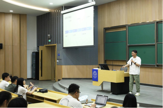 随后,宋佳晖围绕研究生培养环节的相关内容展开讲解。他首先强调了毕业论文的开题、中期考核、答辩等关键环节的注意事项,并提醒同学们必须严格按照时间节点和要求完成论文写作。同时,他也强调了导师在研究生培养过程中的重要作用,鼓励同学们多与导师沟通交流,共同推进研究工作。