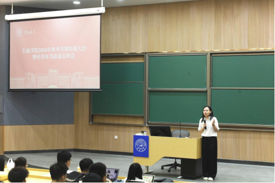 于逸夫教学楼五阶召开2024年秋季学期年级大会曁培养环节政策说明会,研究生办公室主任高琛老师、研究生教学秘书宋佳晖老师及2024级全体硕士、博士研究生新生参加了本次会议。