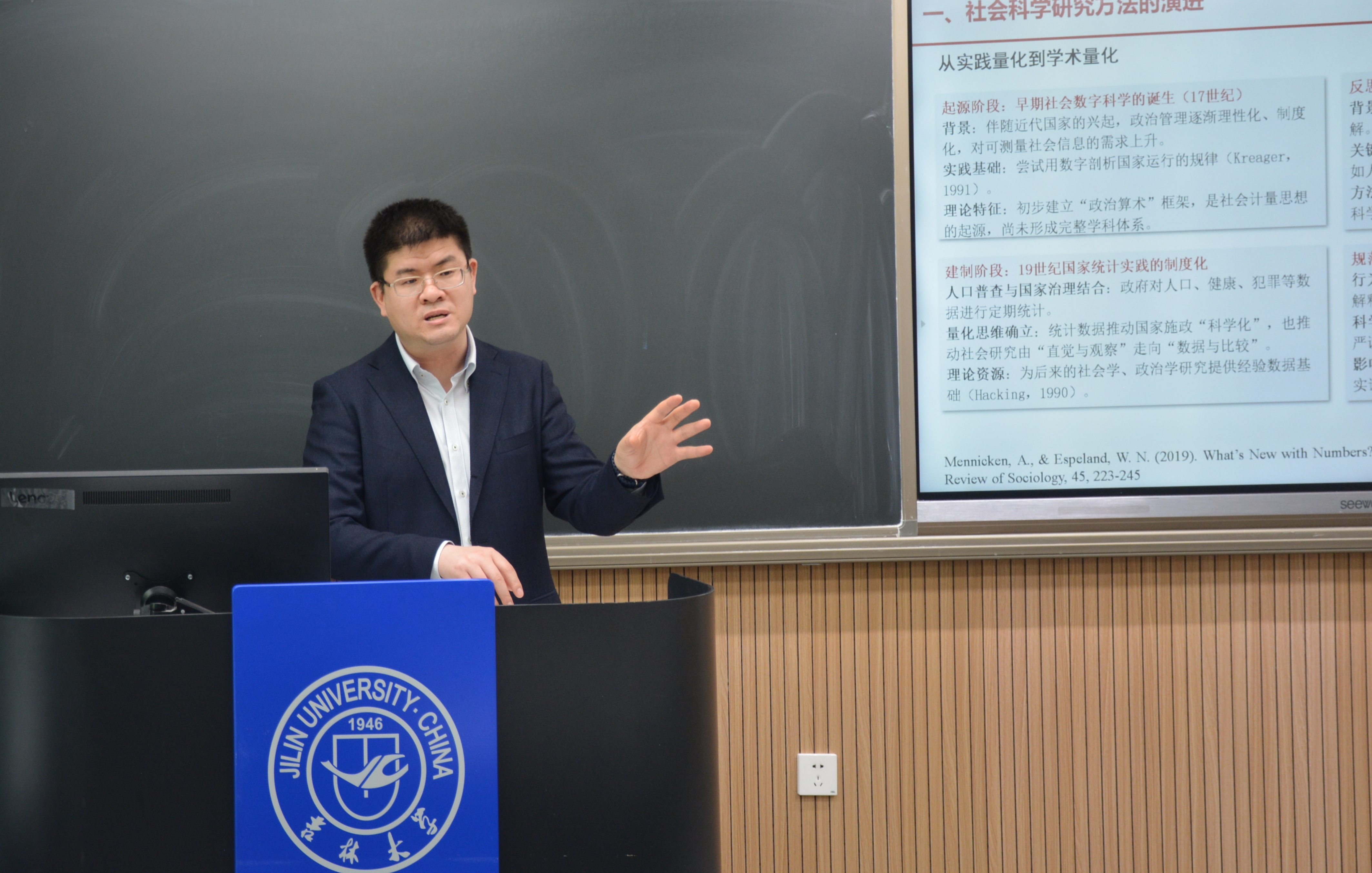 在逸夫楼102教室成功举办了政治学与行政管理学“名家引领”精品课程(第八期)。中国人民大学公共管理学院博士生导师臧雷振教授应邀担任主讲嘉宾,为同学们带来了题为“人工智能时代的社会科学范式转型:知识生产逻辑与方法工具的重塑”的精彩课程。成人导航