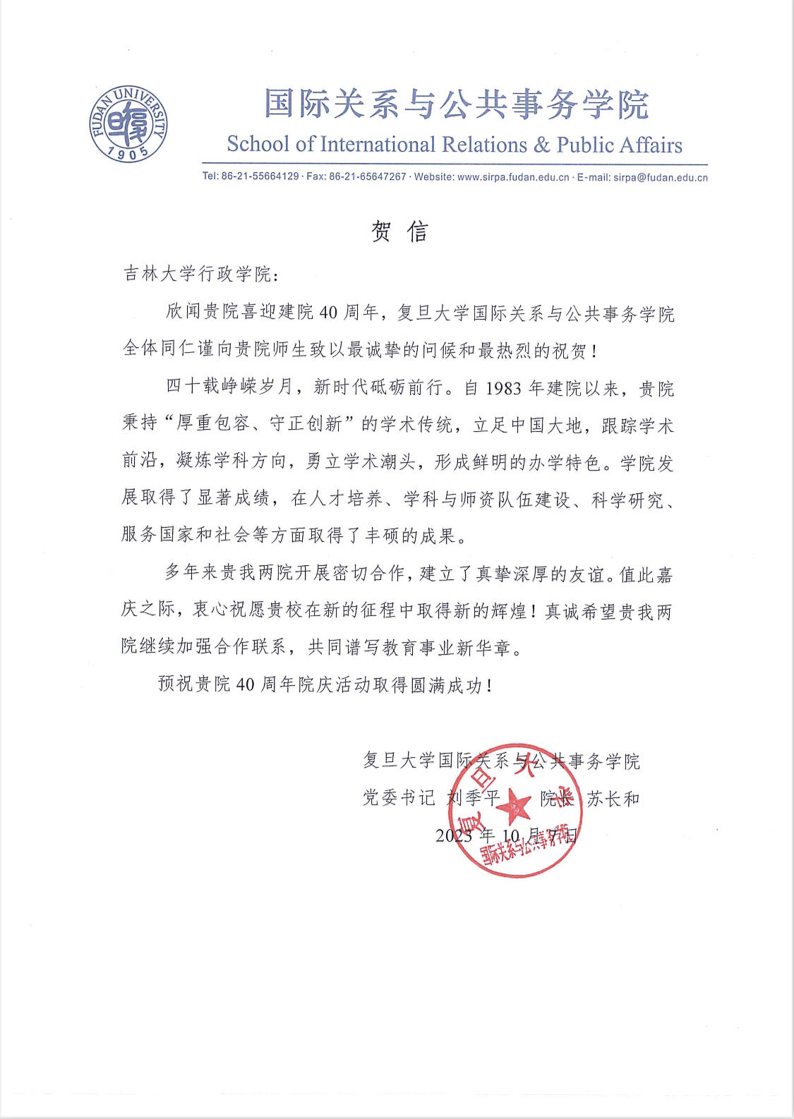 复旦大学国际关系与公共事务学院的贺信-吉林大学行政学院 <#webadvjs#>