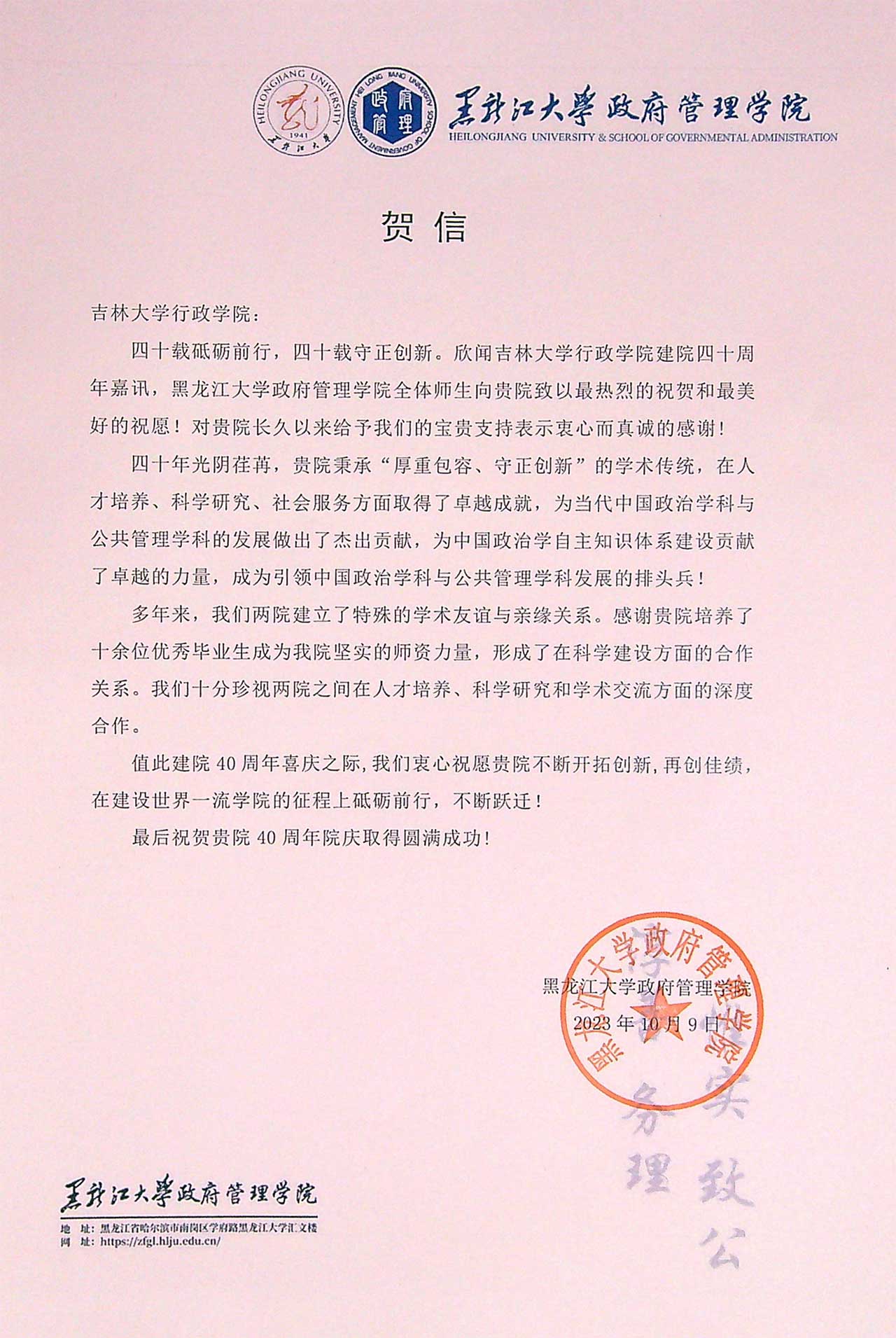 黑龙江大学政府管理学院的贺信-吉林大学行政学院 <#webadvjs#>