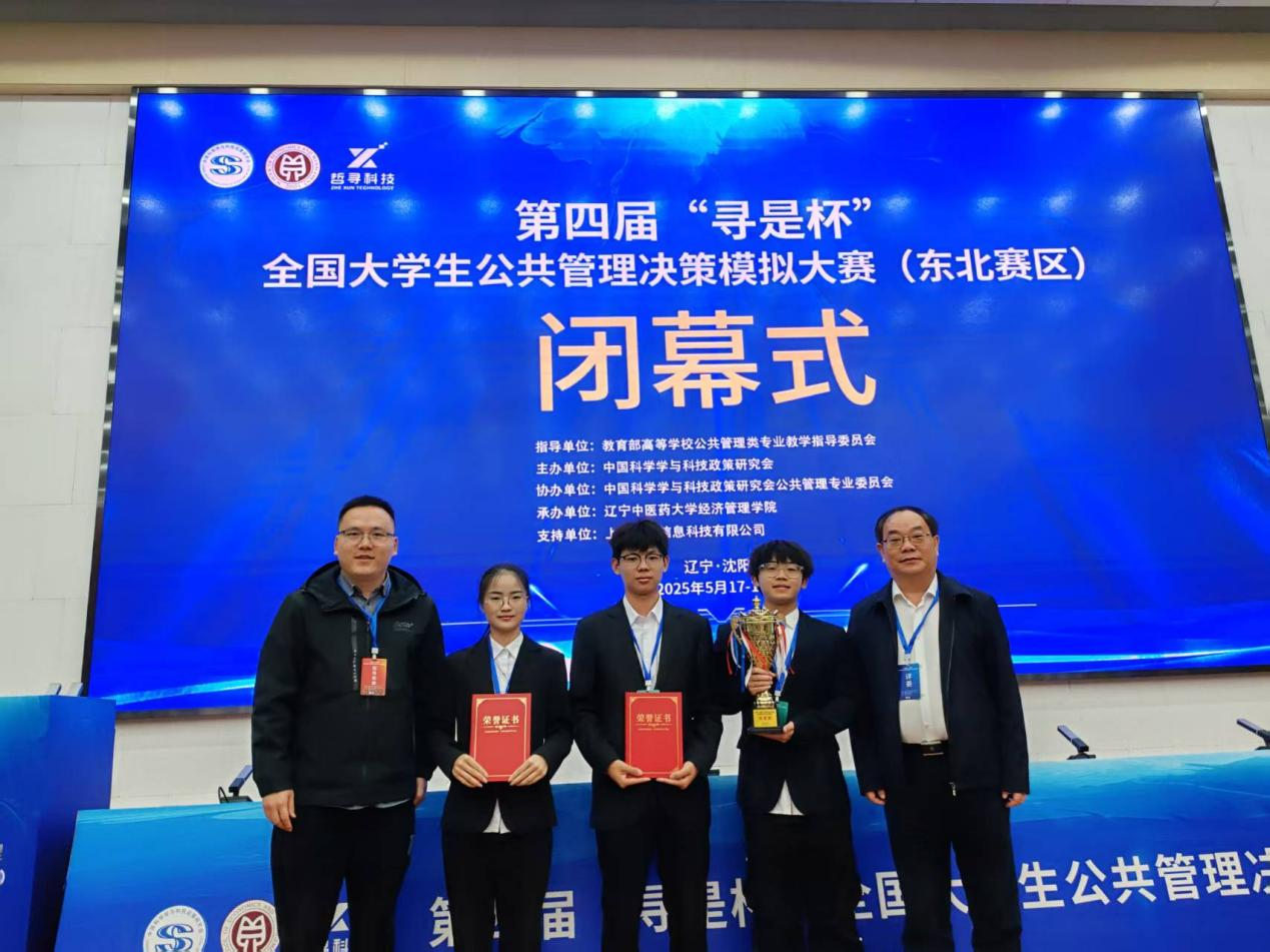 参加第四届“寻是杯”东北地区大学生公共管理方案设计与决策对抗大赛。本次大赛由教育部高等学校公共管理类专业教学指导委员会指导,中国科学学与科技政策研究会主办,辽宁中医药大学经济管理学院承办,上海哲寻信息科技有限公司提供技术支持。来自黑龙江、吉林、辽宁的25所高校共26支队伍参加了此次比赛。